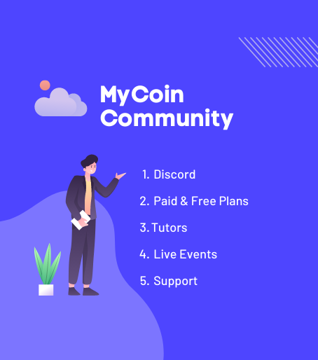 The MyCoin Community will be accsesable to all users of MyCoin. MyCoin will host live events such as workshops, expert panels, and prensentations. Along with events, members will have accsess to support and community chats where they can ask questions, and get help from other members. Paid user will also have accsess to the Premium Community, where there will be Paid Member only events and chats, along with private tutoring sessions.